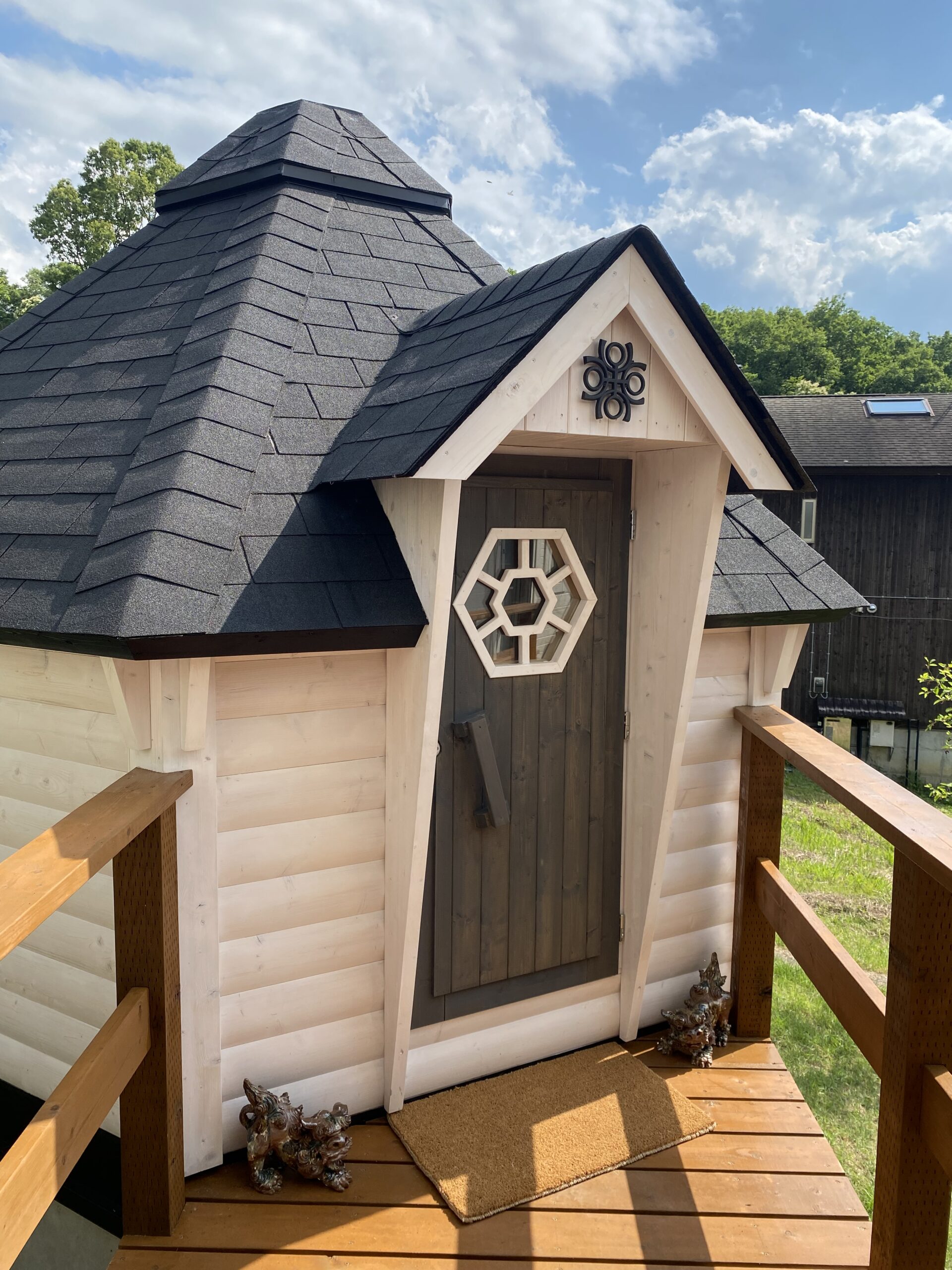 木の温もりに満ちた空間に、円形テーブルが心地よく馴染んでいます。内装の質感と調和し、柔らかな一体感が生まれました。緑のラグとの相性も美しく、リラックスした時間が流れるパーソナルな空間に仕上りました。